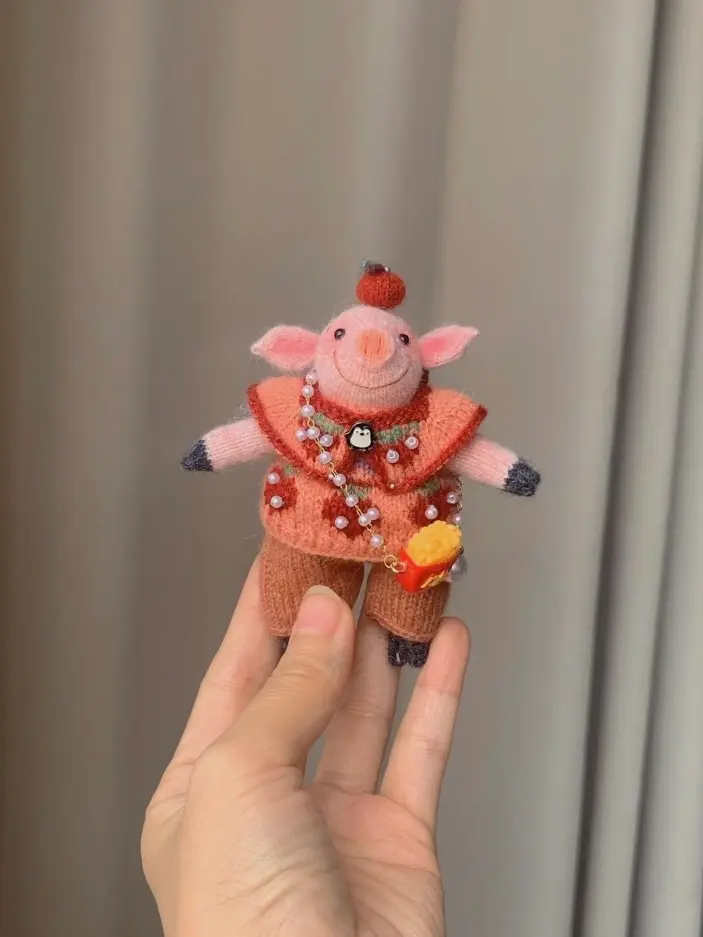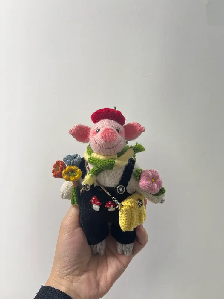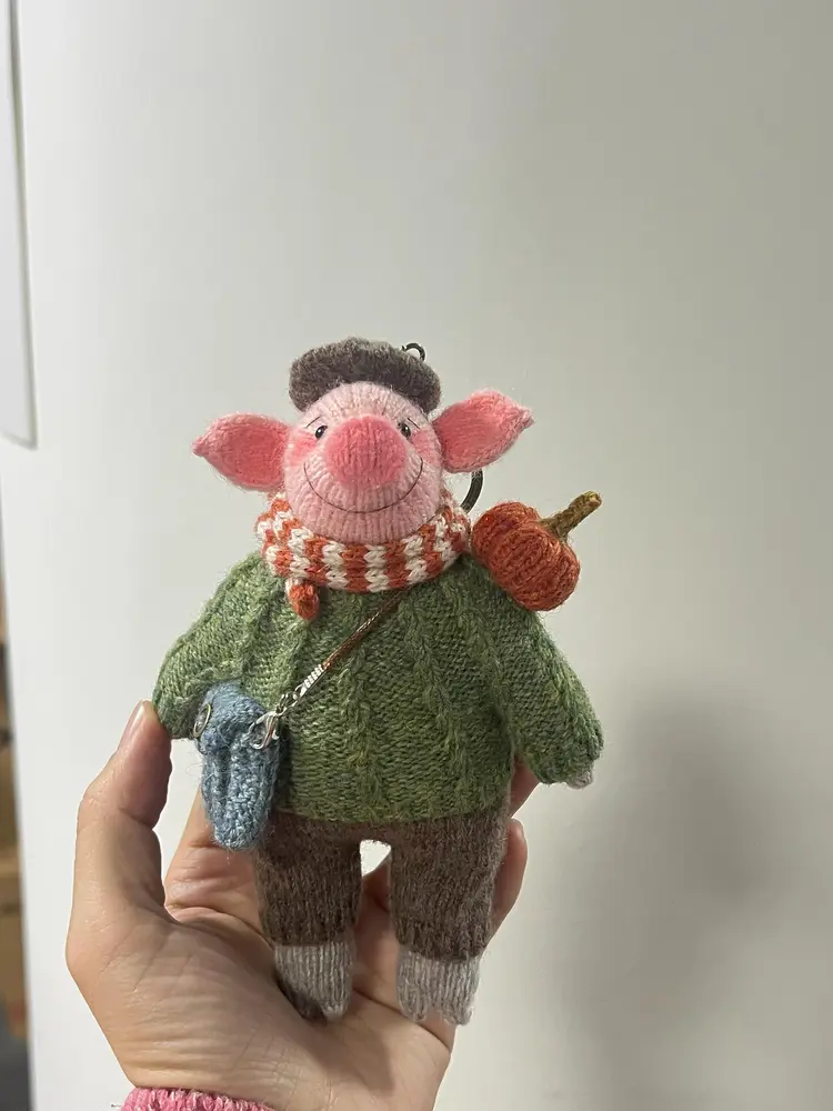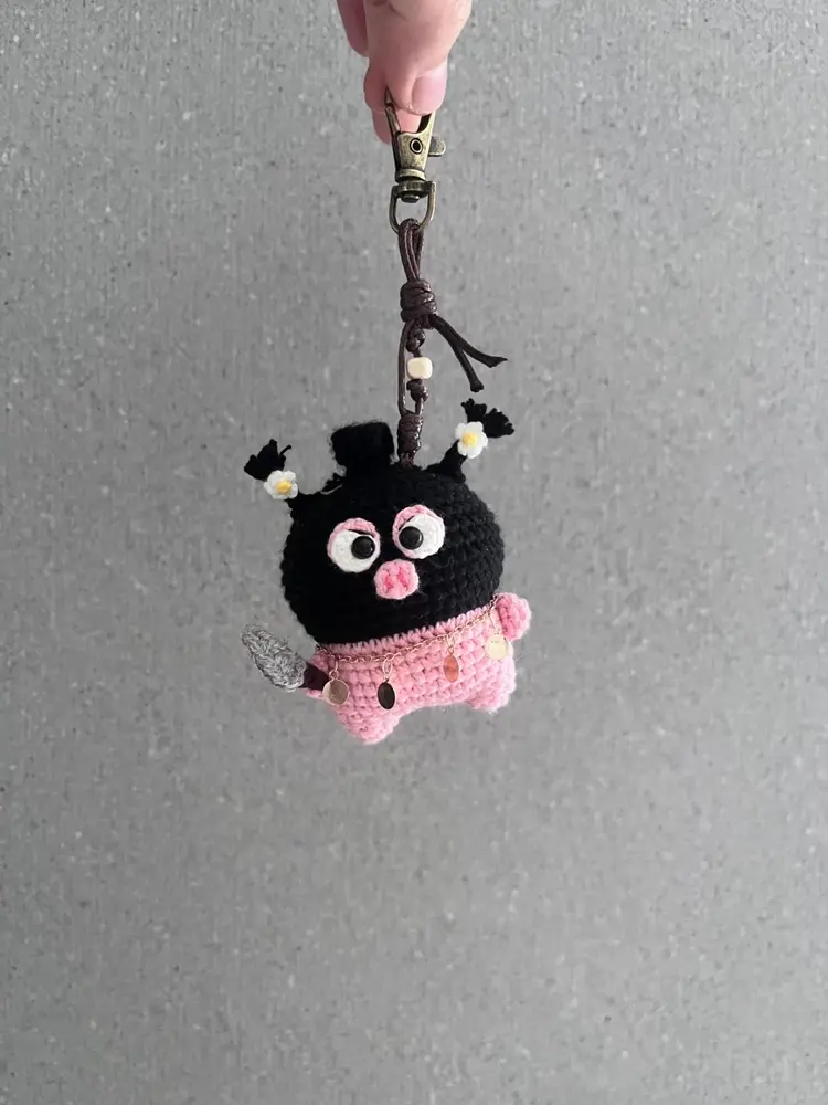 Crochet Bandit Pig Bag Charm | Quirky Animal Plush Keychain