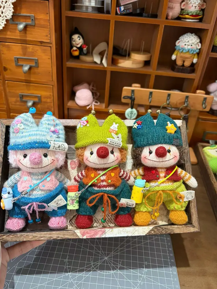 79.00 $Knitted Clown Bag Charm | Vintage Circus Plush Keychain