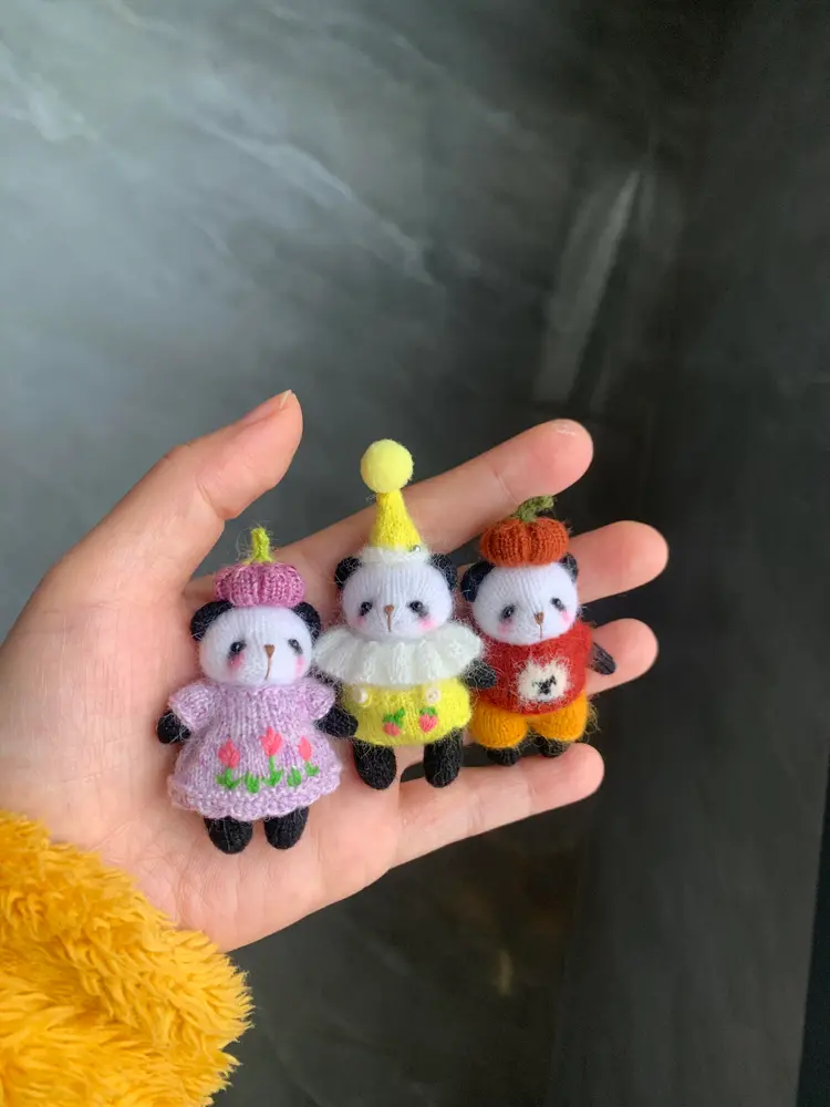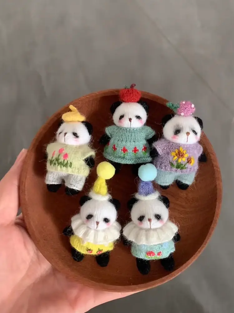 Miniature Knitted Panda Plush | Micro Artisan Pocket Panda Toy (4cm)
